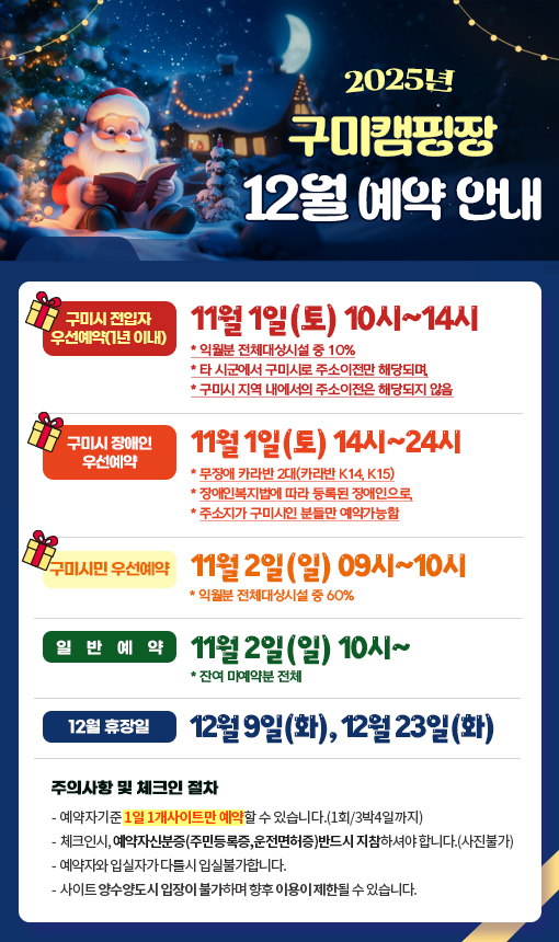 구미캠핑장 12월 예약안내 구미캠핑장 12월 예약안내1. 구미시 전입자(1년이내)...